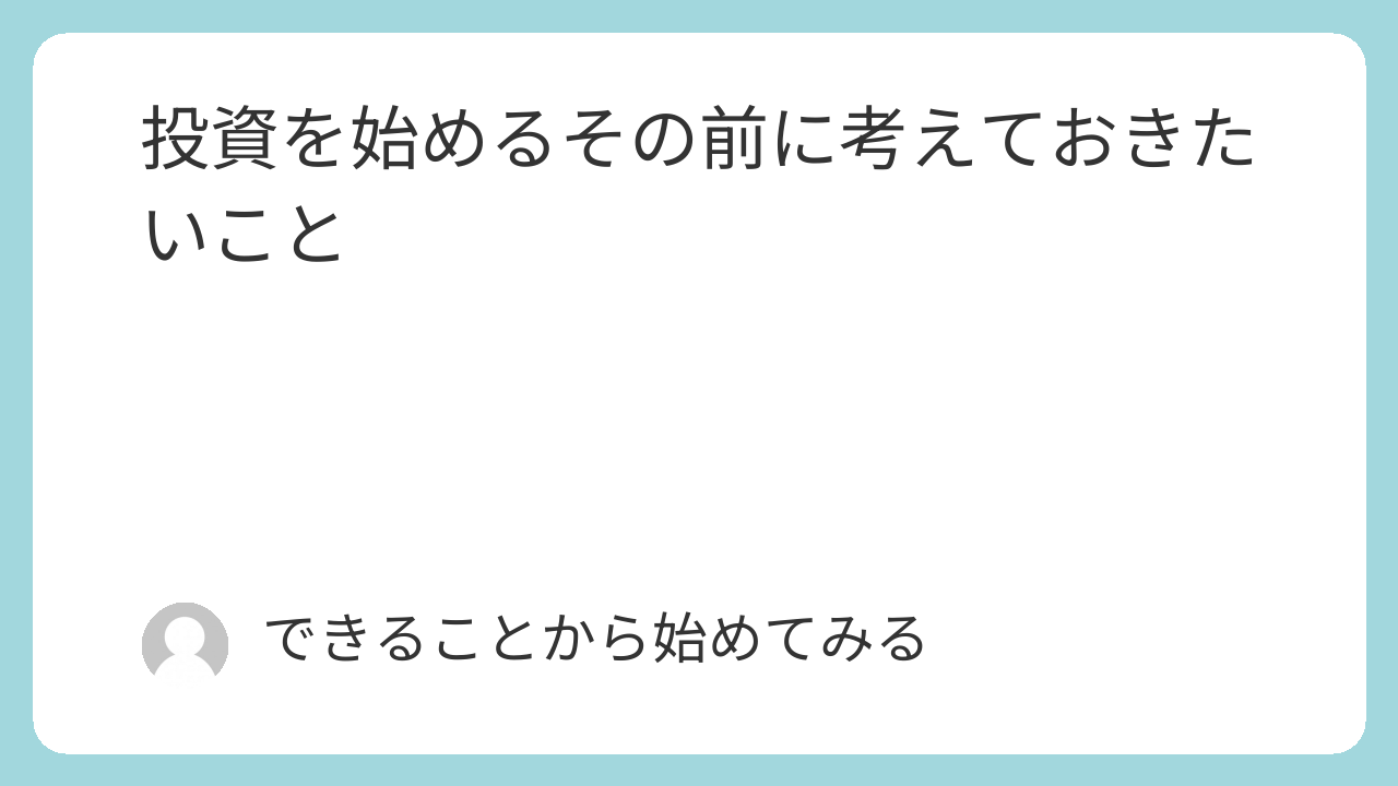 新NISAが始まりメディア等で見聞きする機会も増えてきた昨今、なんとなく「そろそろ自分も投資を始めた方がいいのかな?」という気持ちになってきている人も多いと思います。そこで、今回は後で「そんなはずじゃなかった!」と後悔しないように投資を始める前に考えておきたいことについて考えていきます。
