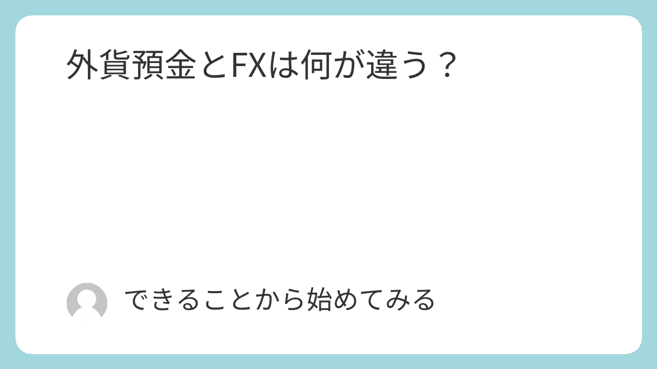 外貨預金とFXは、似ていいる投資方法ではありますが、相違点もあります。では、具体的に見てみましょう。