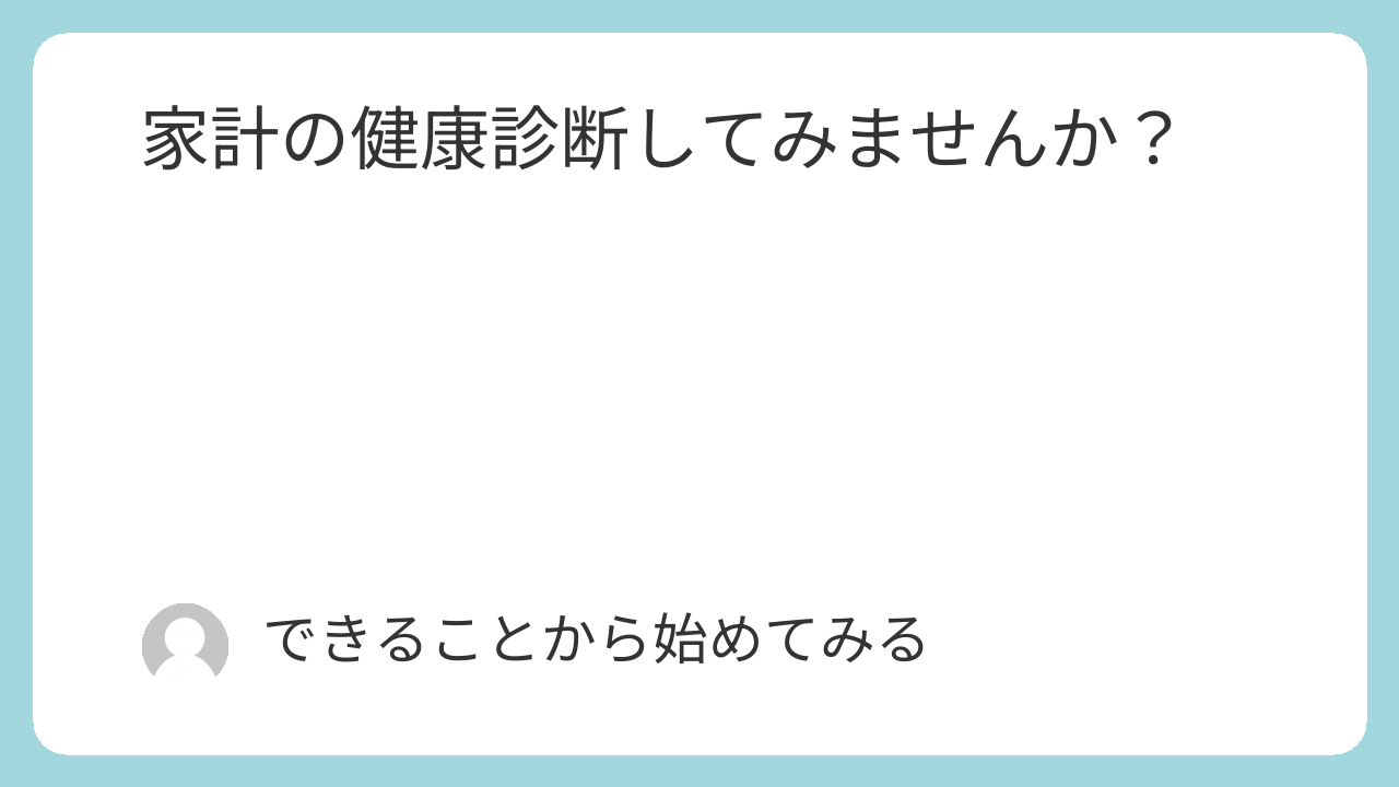 そこで今回は、家計簿とは違った視点で家計の健康診断の方法について説明します。